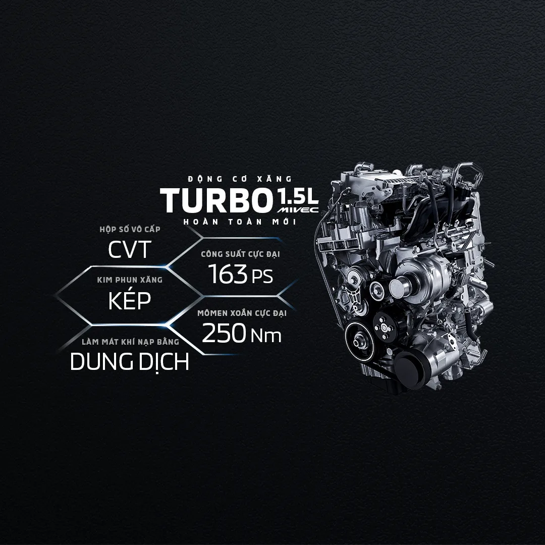 Động cơ xăng Turbo 1.5L và hộp số vô cấp CVT cho khả năng tăng tốc mạnh mẽ, phấn khích và độ phản hồi chân ga nhanh nhạy.
