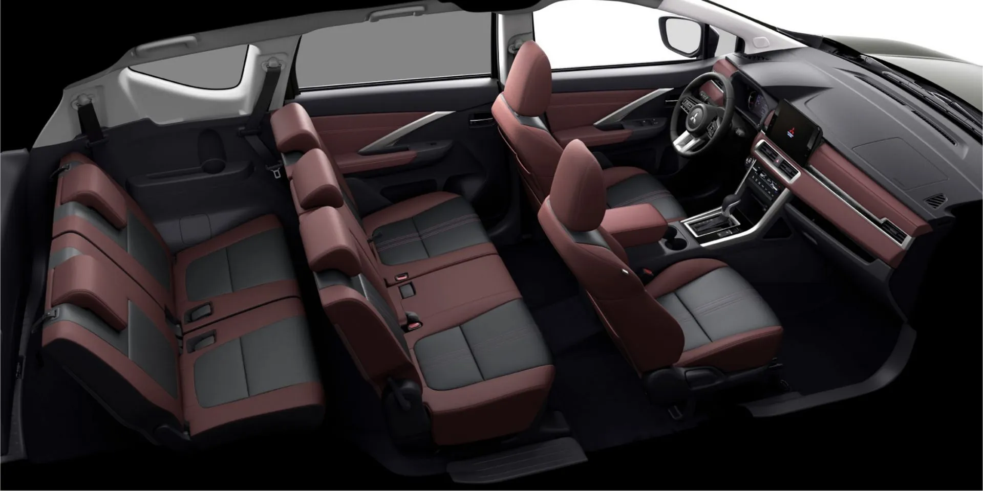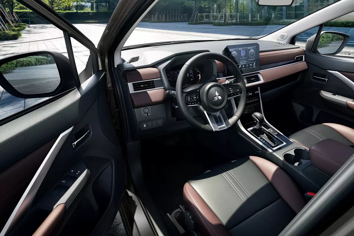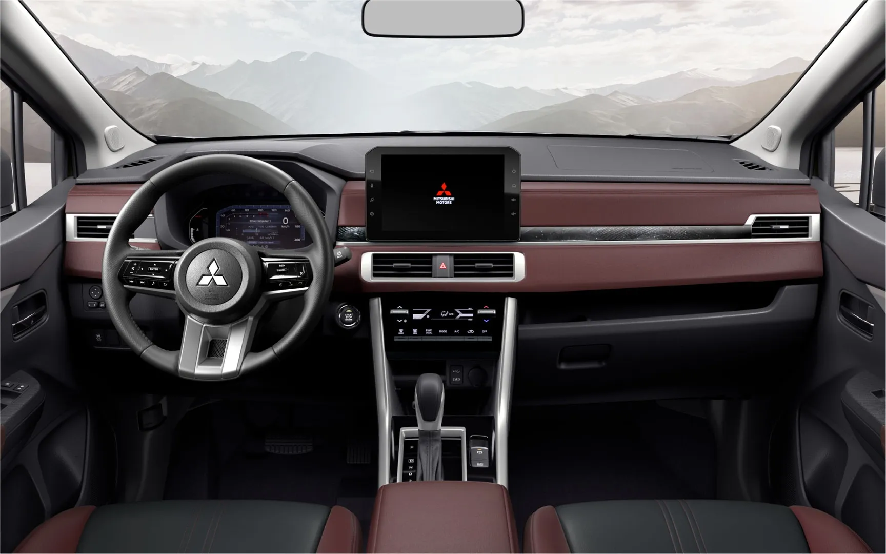 Khoang cabin Xpander Cross 2025 xịn xò, trẻ trung với sự kết hợp tông màu đỏ/đen thay cho xanh/đen như trước. Vô-lăng trợ lực chỉnh điện 4 hướng tích hợp các nút chức năng hỗ trợ lái như chỉnh âm thanh, điện thoại rảnh tay, kiểm soát hành trình Cruise Control. Phía sau bố trí màn hình kĩ thuật số 8 inch dành cho người lái.