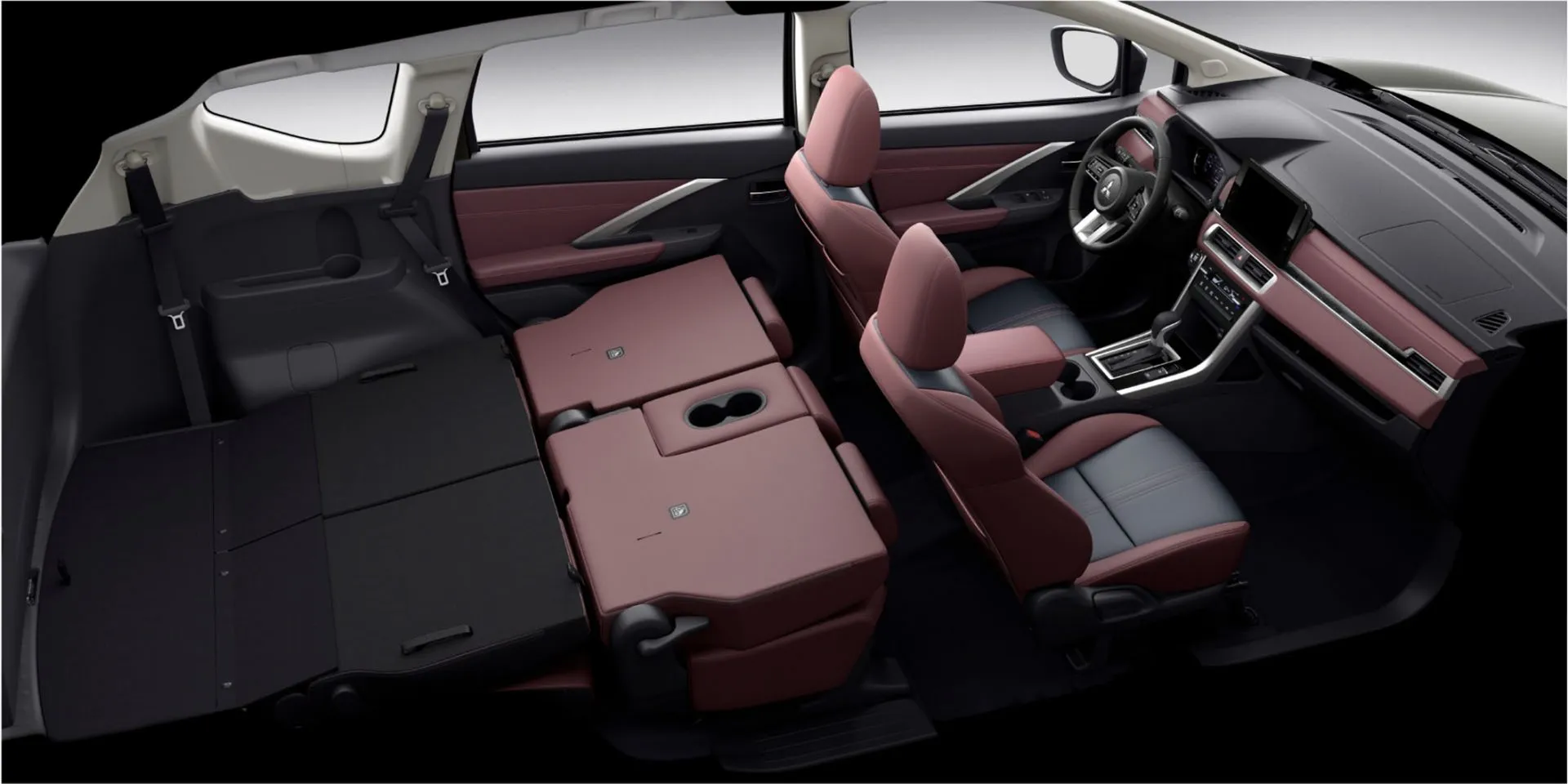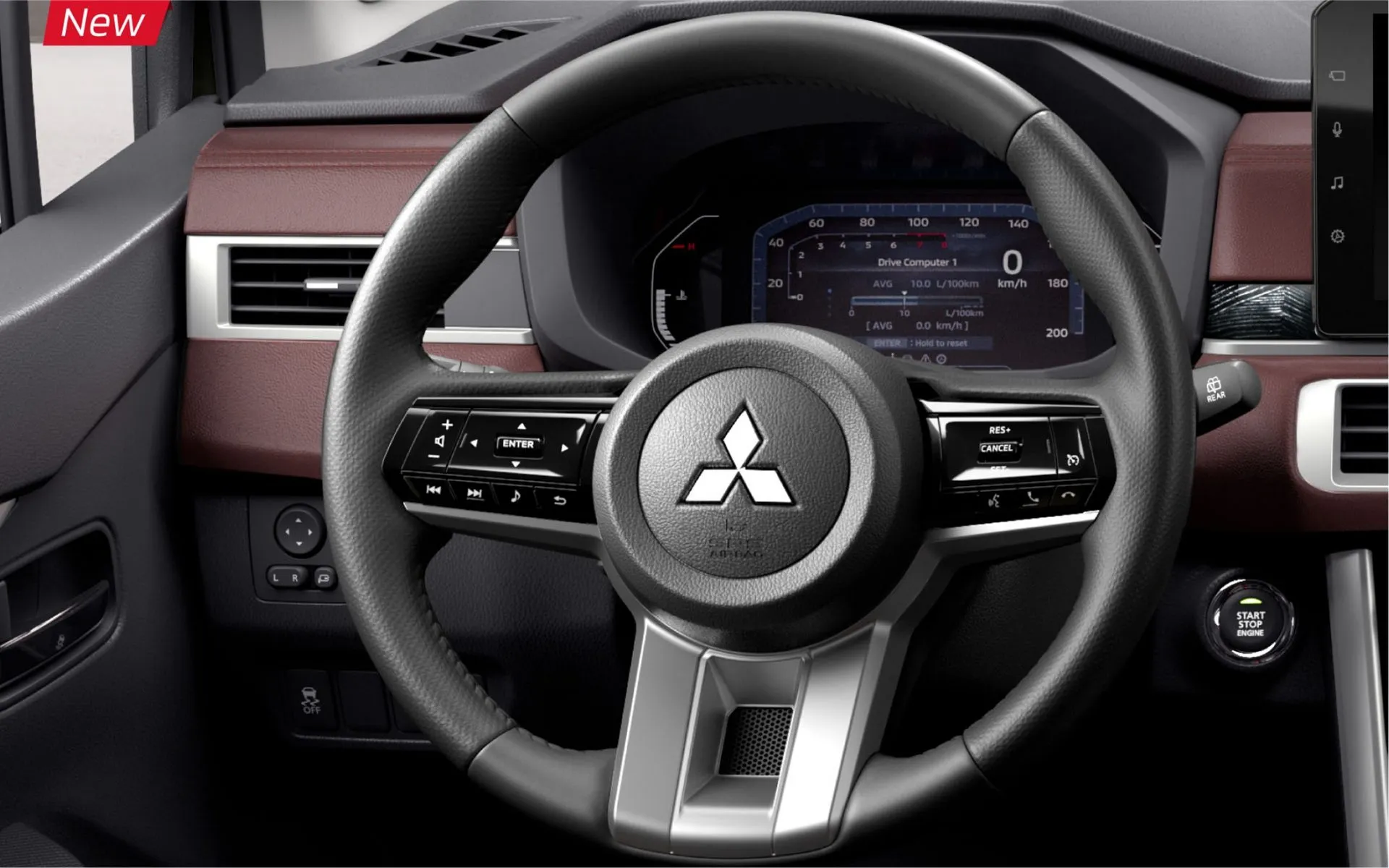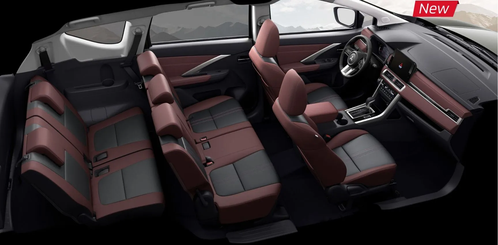 Khoang cabin Xpander Cross 2025 xịn xò, trẻ trung với sự kết hợp tông màu đỏ/đen thay cho xanh/đen như trước. Vô-lăng trợ lực chỉnh điện 4 hướng tích hợp các nút chức năng hỗ trợ lái như chỉnh âm thanh, điện thoại rảnh tay, kiểm soát hành trình Cruise Control. Phía sau bố trí màn hình kĩ thuật số 8 inch dành cho người lái.