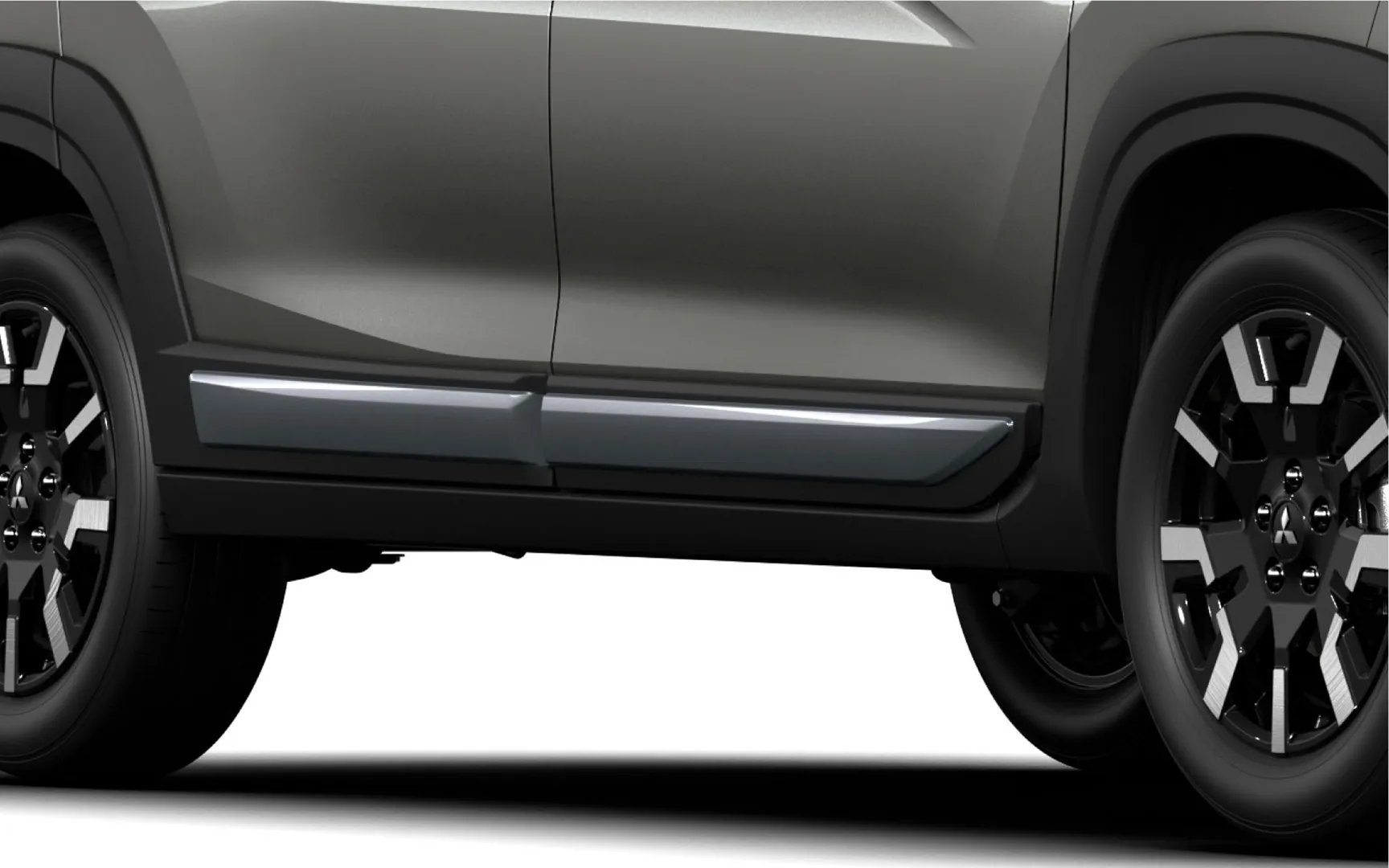 Chạy dọc thân xe là bộ la-zăng 17 inch với tạo hình thể thao. Gương chiếu hậu tích hợp đèn xi-nhan, tay nắm cửa mạ cron sáng bóng giúp chiếc xe thêm phần nổi bật, năng động. Đuôi xe cũng có thiết kế tương tự như Xpander, điểm khác duy nhất nằm ở ốp cản sau màu bạc với ốp viền màu đen bao quanh.