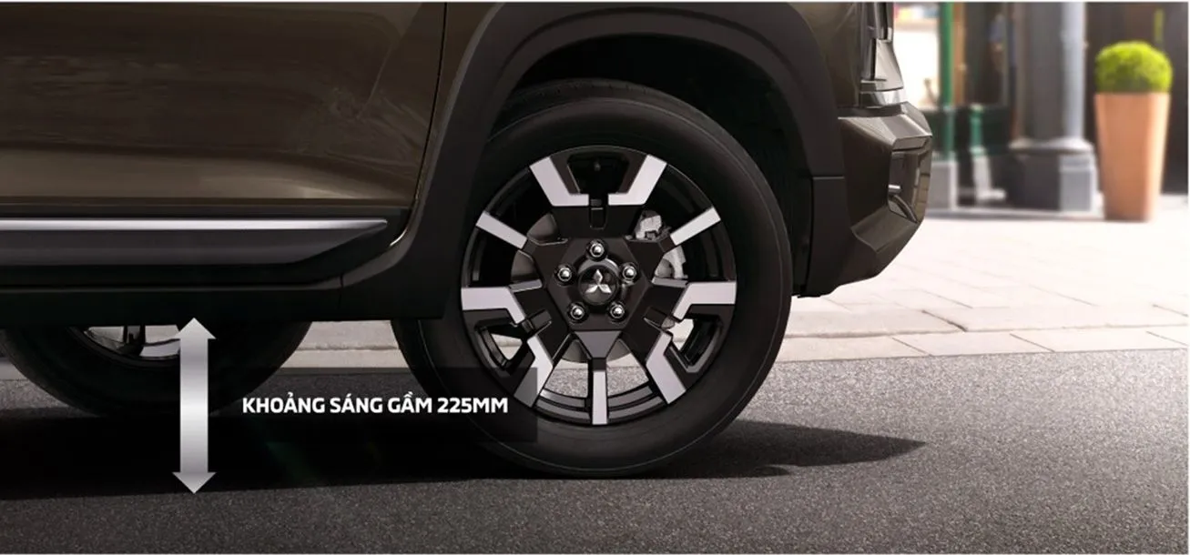 Khoảng sáng gầm lớn 225mm. Khả năng lội nước lên tới 400mm, mang lại sự linh hoạt trên mọi điều kiện địa hình.